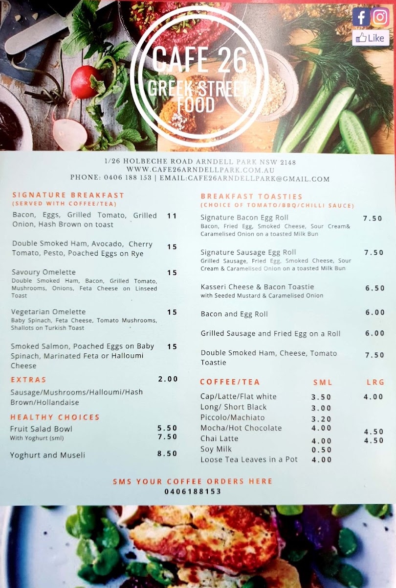 Cafe 26 Arndell Park Menu