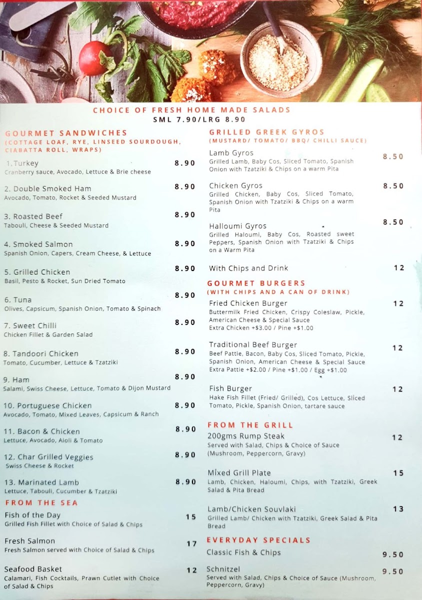 The menu at Cafe 26 Arndell Park features a variety of options catering to breakfast, lunch, and casual dining needs. It includes diverse food categories such as traditional gozleme, grilled plates, sandwiches, and burgers with influences from Greek and Portuguese cuisines.